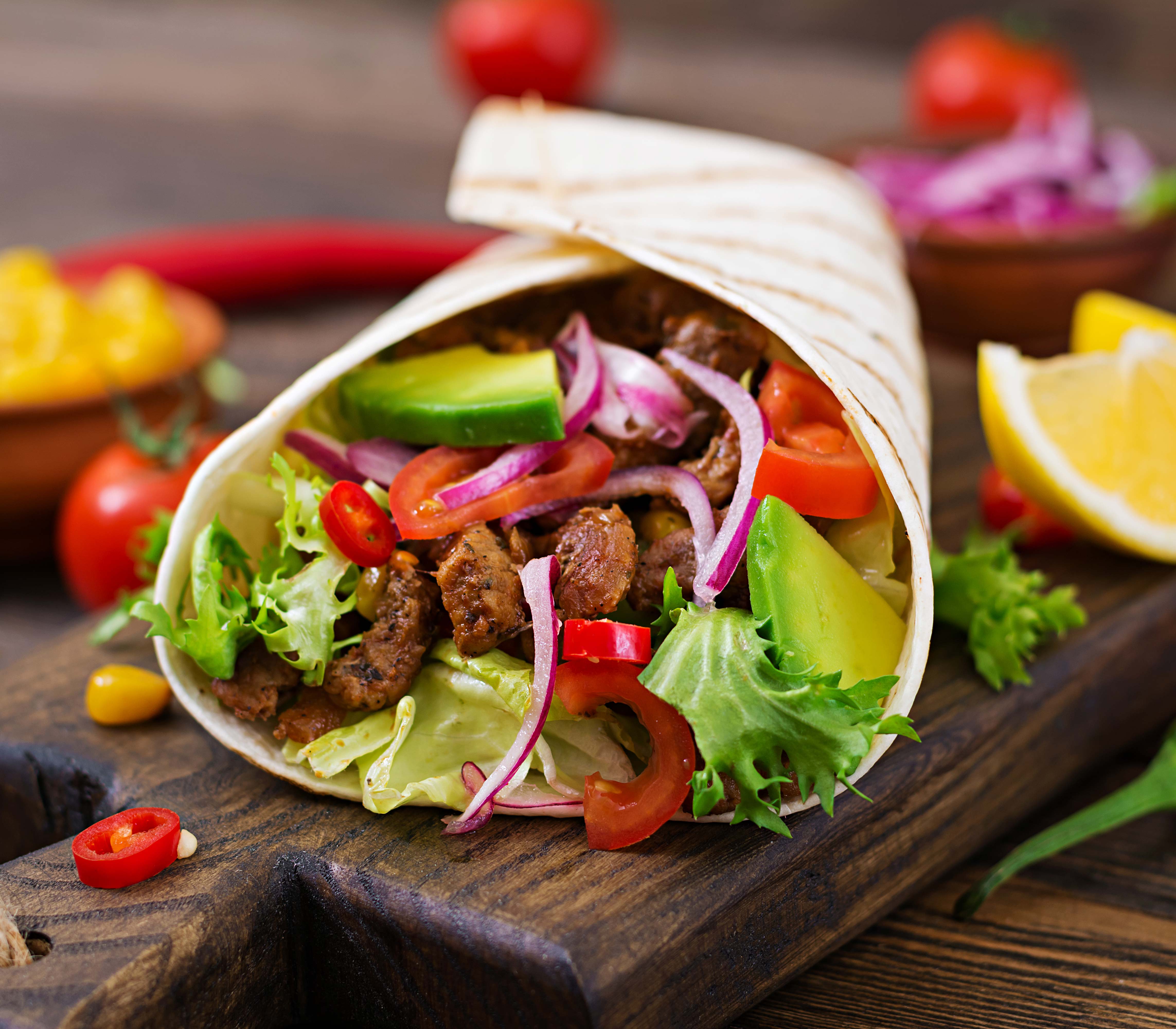Alle mit Möhren, Gurken, Tomaten und Eisbergsalat, dazu Sauce nach Wahl.